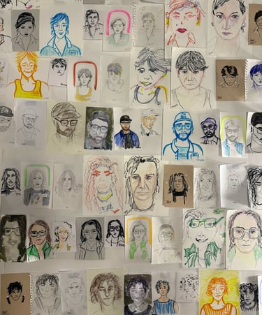 We are going to put up all the portraits on the wall so you can see yourself drawn by ~10 other people. At the end you will get to take home the portraits of you!